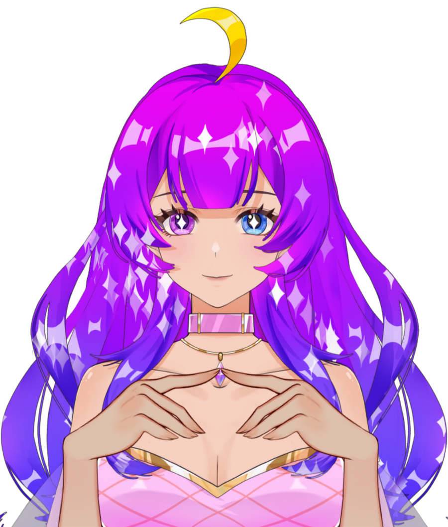 From the sky, a star fell down onto the earth. Not knowing where she was, she walked around until she smelled something delicious and heard a rumble from her tummy. She began to head towards the smell, but because her body was so weak from the fall, every step felt like agony. Once she found the origin of the smell (a bakery/bread), she saw someone approaching her who asked if she was okay. Before she could answer, she fell unconscious. She woke up to the old lady that found her and saved her life. The star thanked her! The old lady offered her a place to stay. The star, overjoyed, immediately took her up on that offer! After being in the care of the old lady for 3 months, the star learned a lot about human society (mostly about idols because she just fell in love with them and all they stand for)! Then, the old lady told the star about a family member coming to visit for a while. After being introduced to the old lady's grandson, the old lady pushes them both out the door to go get ingredients for her pastries! As the pair go off into the city and get all kinds of ingredients, they get to know one another! After they finished shopping and were on the way back home, the star spotted someone in a house on the side of the road watching something. Seeing the star curious, the nephew explained that what he was watching was a VTuber, which was like an online idol. After hearing that, the star was overwhelmed with excitement and IMMEDIATELY HAD TO TELL THE OLD LADY SHE WANTED TO BE ONE! Once the star told the old lady about her dream of being an online idol, the old lady suggested that the star move in with her nephew in the city so she could pursue her idol dream in a bigger place with better opportunities! So, the star left the bakery and went on to pursue her dreams as a VTuber... TO BE CONTINUED!